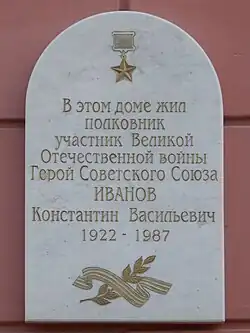 - ↑ Мемориальная доска Иванову Константину Васильевичу. Сайт архиват.рф. Дата обращения: 13 июля 2015. Архивировано из оригинала 10 августа 2016 года.