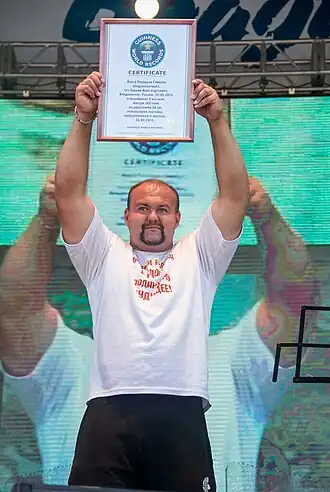 {{cite news}}: Проверьте значение даты:|date=(справка) - ↑ Александр Васильев. Богатырь из Владивостока попал в книгу рекордов Гиннеса. primorye24.ru (1 июня 2015). Дата обращения: 20 января 2016. Архивировано 26 января 2016 года.
