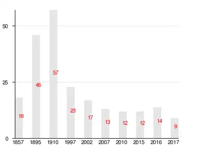 | 1997[14] | 2002[15] | 2007[16] | 2010[17] | 2017[1] |
