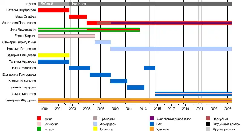 - Наталия Потапенко — аккордеон, соло партии, бэк-вокал (2008—настоящее время)