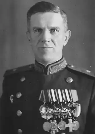 - Был награждён орденом Ленина (21.02.1945), четырьмя орденами Красного Знамени (26.07.1944, 03.11.1944, 16.02.1945, 20.06.1949), орденом Отечественной войны 1-й степени (19.05.1944), а также медалями, в числе которых «XX лет Рабоче-Крестьянской Красной Армии», «За победу над Германией в Великой Отечественной войне 1941—1945 гг.» (09.05.1945), «За оборону Кавказа» (01.05.1944), «За взятие Кенигсберга» (09.06.1945)[3].