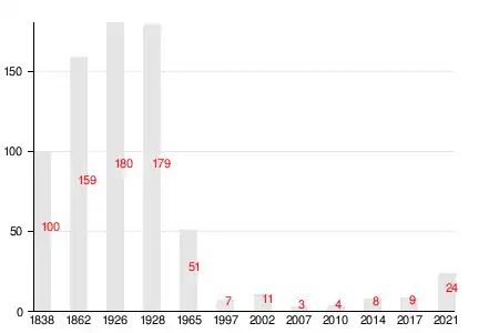 | 1838[23] | 1862[24] | 1997 | 2002[25] | 2007[26] | 2010[27] | 2014[28] |