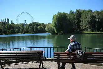 Парк культуры и отдыха «Измайловский» (310 Га) был создан в 1931 году на территории ПиП «Измайлово». Новая парковая территория была выделена в связи с планами построить на ней крупнейший в СССР спортивный комплекс со стадионом на 100 тысяч мест. С 1932 по 1961 годы парк носил имя И.В. Сталина. Строительство стадиона было приостановлено с началом Великой Отечественной войны, а после смерти Сталина — заморожено. Парк располагается западнее от Главной аллеи в Измайловском лесопарке и располагает развитой развлекательной инфраструктурой. Здесь есть площадки детских аттракционов, веревочный городок, тир, каток (функционирует зимой), площадки для игры в волейбол, баскетбол, стритбол, бадминтон, шахматно-шашечный павильон, тренажерные и воркаут площадки. С 1957 года в парке располагается второе по высоте в столице колесо обозрения, построенное к VI Всемирному фестивалю молодежи и студентов по личному распоряжению Н.С. Хрущёва. Второе колесо обозрения — Малое, высотой 25 метров — располагается в детском городке. В центральной части парка находится Площадь Мужества с Вечным огнем и музеем военной техники под открытым небом в память о 85-м гвардейском минометном полку «Катюша», который формировался на этом месте в годы войны с фашистами. В 2018 году после ремонта в парке «Измайловский» открылась летняя эстрада «Солнечная»[52] (располагается недалеко от шахматно-шашечного павильона) — летом на ее базе функционирует открытый кинотеатр вместимостью до 600 человек.