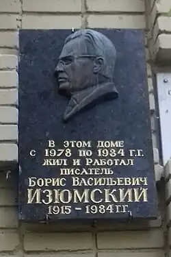 Борис Васильевич Изю́мский (1915—1984) — советский русский писатель, член Союза писателей СССР, член ВКП(б) с 1946 года. Заслуженный работник культуры РСФСР, почётный гражданин г. Волгодонска.