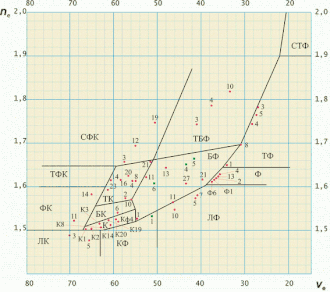 Бесцветное оптическое стекло Изюмского приборостроительного завода на диаграмме Аббе.