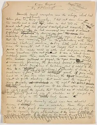 - ↑ H. P. Lovecraft, «The Shunned House», At the Mountains of Madness, p. 237.