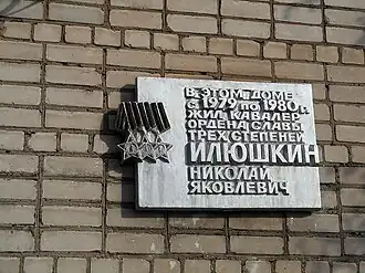 - ↑ Илюшкин Николай Яковлевич, Орден Славы III степени :: Документ о награде :: Память народа. pamyat-naroda.ru. Дата обращения: 27 октября 2019. Архивировано 27 октября 2019 года.