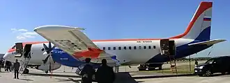 Ил-114 — советский и российский турбовинтовой ближнемагистральный (региональный) пассажирский самолёт, разработанный в 1980-х годах в КБ Ильюшина[3]. Самолёт предназначался для замены самолётов семейства Ан-24, а на некоторых региональных направлениях — турбореактивных Ту-134 и Як-40. До 2012 года серийное производство велось на Ташкентском авиационном производственном объединении имени В. П. Чкалова, бывшем заводе № 84. Первый полёт состоялся 29 марта 1990 года[4]. Всего было произведено 20 машин, из которых в эксплуатации 2, разрушены 3, остальные на хранении.