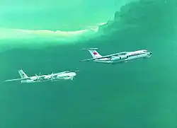 Ил-78 заправляет бомбардировщик Ту-95, иллюстрация из «Soviet Military Power», 1988 год