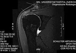 - ↑ Peh, WC (1995). Acromial arch shape:assessment with MR imaging. Radiology. 195 (2): 501–5. doi:10.1148/radiology.195.2.7724774. PMID 7724774.