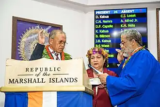 - 1 2 Marshalls' President Kabua's inauguration set for Monday (англ.). RNZ (20 января 2020). Дата обращения: 29 августа 2021. Архивировано 18 октября 2020 года.
