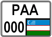 Фон государственных регистрационных номеров белый, окантовка, цифры и буквы чёрного цвета. С левой стороны номера флаг РУз. Порядок следования от PAA 200 и далее. Тип IIА — задний государственный регистрационный номер двухстрочный выдаётся для автомобилей высших государственных органов, органов управления и министерств (юридических лиц), место крепления которого не соответствует габаритам государственного регистрационного номера типа II. Фон государственных регистрационных номеров белый, окантовка цифры и буквы чёрного цвета. С правой стороны номера снизу флаг РУз. |