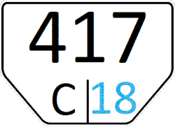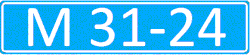 Содержит белые символы на голубом фоне. Формат — буква M и четыре цифры, разделённые попарно дефисом. | |