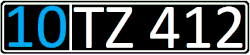 Формат знака — двузначный код региона (голубые цифры), две буквы и три цифры чёрного цвета. Код региона расположен в отдельном окне слева. Двухрядный номерной знак юридических лиц содержит три цифры в верхнем ряду, две буквы и код региона — в нижнем. |