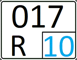 Формат знака — двузначный код региона (голубые цифры), буква и четыре цифры чёрного цвета. Код региона расположен в отдельном окне слева. | |
