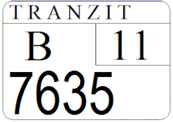 Содержит символы в два ряда: букву и код региона — в верхнем ряду, четыре цифры — в нижнем. Вверху, в заголовке пишется слово «TRANZIT». |