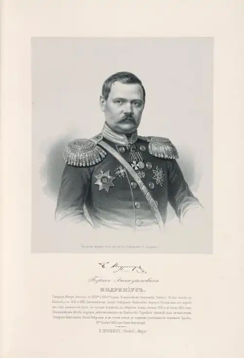 | Генерал-майор Бернгард Эммануилович Индрениус. Литография П. Ф. Бореля. | |
