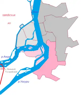 Площадь территории в городской черте (правобережье) — 59 км²[1], с подчинёнными территориями левобережья и водного зеркала Амура — 128 км²[1].