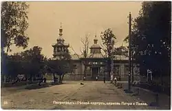 До начала XX века в Лесном не было приходской церкви. В 1900 году было получено разрешение возвести у Круглого пруда на пересечении 2-го Муринского и Институтского проспектов каменный храм, а так как постройка каменной церкви обычно длится долго, то решено было сначала построить временный деревянный храм. 17 июня 1901 года церковь была освящена во имя апостолов Петра и Павла. 9 августа 1935 года церковь закрыли по решению Президиума ВЦИК. Вскоре здание было разобрано, а Круглый пруд засыпан.