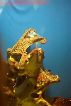 Также известно о случаях, когда содержащиеся в неволе головоногие вылезали из аквариумов, передвигались по полу лаборатории, попадали в другой аквариум, чтобы поесть крабов, и возвращались обратно в свои аквариумы[16][17][18].