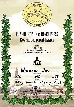 - ↑ Василий Кузнецов. Результаты RAW Чемпионата Европы по пауэрлифтингу и жиму штанги лежа. Дата обращения: 6 мая 2013. (недоступная ссылка)