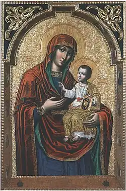 | «Богородица Одигитрия», 147х92 см, Церковь Воздвижения Честного Креста, скит Манявский (1698—1705) | «Спас Вседержитель», дерево, левкас, село Городище (конец XVII века) | «Юрий Змееборец», дерево, левкас, село Боблы (начало XVIII века) |
