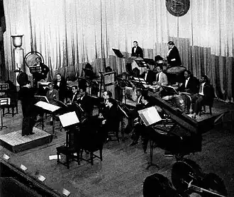Слонимский дирижирует оркестром, исполняющим произведение в Гаване | |