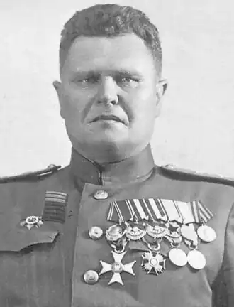 - Три ордена Красного Знамени (26.07.1944, 03.11.1944, 16.01.1948);