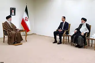 До падения режима Башара Асада в конце 2024 года Сирия являлась одним из долговременних союзников Ирана, их сотрудничество было основано на тактическо-стратегическом партнёрстве авторитарных режимов[39]. Их совместными усилиям были сорваны поддерживаемые США мирные переговоры между Палестиной и Израилем[40].