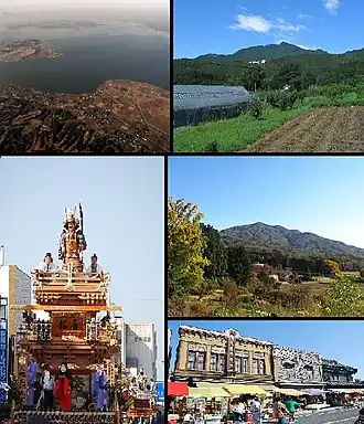 - ↑ Площадь указывается по данным сайта Geospatial Information Authority of Japan (яп.) с учётом изменений, опубликованных 1 октября 2011 года.