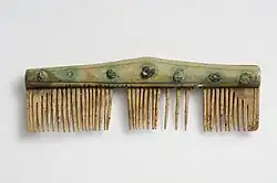 Викинги декорировали, притом нередко весьма искусно, предметы повседневного обихода. В качестве материала для мелкой пластики викинги использовали, помимо дерева и металла, кости и рога одомашненных животных, моржовый клык, китовый ус, рога оленей и лосей[20]. Расчески и гребни изготавливались преимущественно из рога или кости и украшались резьбой или декоративными вставками. Также встречаются крупные костяные булавки с плоским навершием[21].