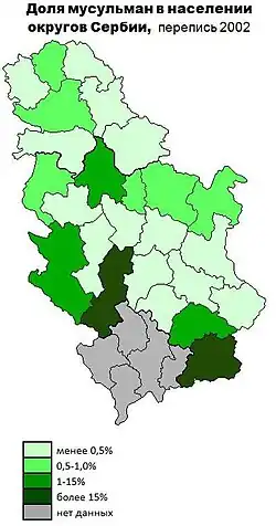 В четырёх общинах Сербии во время переписи 2002 не зафиксировано ни одного последователя ислама: