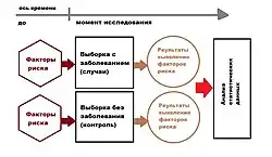 Такое исследование является ретроспективным, поскольку оно начинается после дебюта заболевания и направлено на изучение возможных этиологических факторов, действовавших в прошлом.[1]