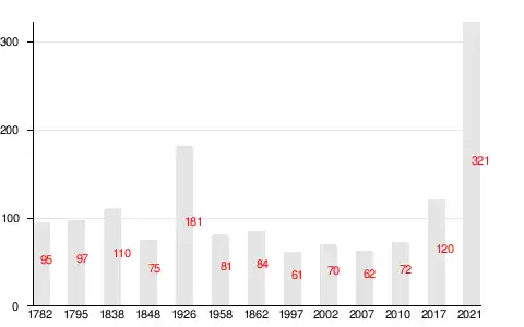 | 1838 | 1848 | 1862[30] | 1928 | 1958 | 1997 | 2002 |