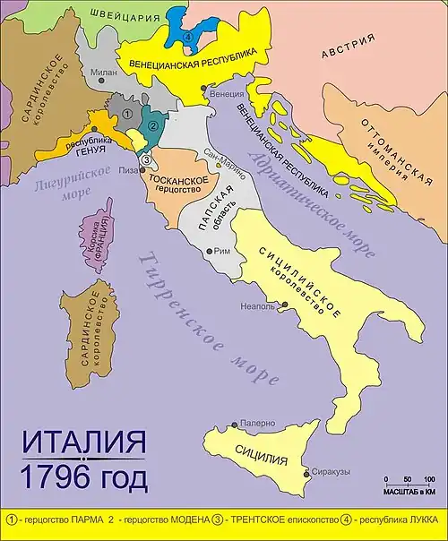 - Венецианская республика (ликвидирована в 1797, часть территории отошла к Австрии; после 1815 часть Ломбардо-Венецианского королевства);