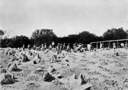 Туземцы жили во дворах, состоявших из 2—3 домов. Несколько дворов составляли деревню. Несколько деревень составляли гау (округ)[6].