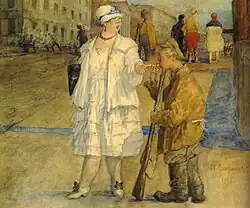 В годы гражданской войны из-за сильного дефицита одежды, люди носили изношенную одежду[191][192]. В годы военного коммунизма большевики открыто призывали к классовой ненависти, грабить и совершать насилие над бывшими привилегированными классами[192], которые стремились не надевать «буржуйскую» одежду, чтобы не выделяться из толпы[107]. Вместе с введением НЭПа и восстановлением городской жизни, петроградцы начали снова одеваться приличнее и следить за внешностью и модой[58].