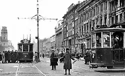 Новое советское руководство унаследовало кризисную жилищную ситуацию. До революции большая часть населения жила в неудовлетворительных жилищных условиях, особенно на рабочих окраинах города, где зачастую отсутствовало электричество и водоснабжение. В 50 000 квартирах в комнатах жило до 4 человек, были распространены случаи, когда в отдельных комнатах жило по 20 человек[84]. Жилищная ситуация резко ухудшилась вместе с притоком беженцев во время Первой мировой войны, многие бедные слои населения занимали углы — пространства около 2,5 кв. метров в комнате или могли позволить себе только койкоместо[85]. Многие рабочие фабрик жили в двухэтажных бараках[85]. В дореволюционном городе также жило множество бездомных[85].