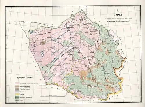 В 1864-1865 годах два теленгитских отока с ограниченным суверенитетом (Первая Чуйская Волость и Вторая Чуйская Волость)[31] добровольно вошли в состав России. На этом завершился процесс вхождения Горного Алтая в состав Российской империи.