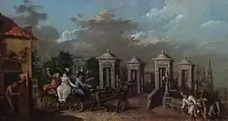 Вкусы и понимание красоты среди дворян отразилось и на развитии культуры, искусства и внешнего облика Петербурга[170]. До екатерининской эпохи среди дворян ценились произведения европейского искусства. При императрице развивалось российское придворное искусство. Произведения создавали выпускники Академии Художеств, где мальчиков обучали архитектуре, скульптуре и живописи. Их выпускники в следующий век становились всемирно известными деятелями искусств[171]. При Екатерине II в живописи была мода на древнегреческие или библейские мотивы, аллегорически объяснявшие зрителю мораль и правила поведения, сами персонажи изображались идеальными и красивыми[172]. Знаменитые живописцы эпохи — Левицкий, Лосенко, Боровиковский[173].