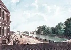 По инициативе Ивана Бецкого[96] набережные Невы, Фонтанки и Екатерининского канала начали укреплять гранитом[93]. В камень были одеты левый берег Невы, c Ново-Адмиралтейского канала до места будущего Литейного моста. Это не только придало городу красоту, но также было выгодно экономически, поскольку гранит останавливал размывание берегов[97], к тому же берега каналов можно было активнее использовать для перегрузки товаров без страха повредить набережную[98]. Каменное укрепление набережных продолжалось на протяжении всего царствования Екатерины[98]. При Екатерине были засыпаны построенные ещё при Петре I каналы на Васильевском острове, которые были непригодны для прохода судов и превратились в помойные овраги, также был засыпан Красный канал у Мойки на западной границе марсового поля[99].