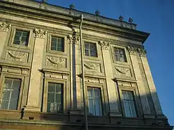 При Екатерине город начало строить множество известных архитекторов, например Джакомо Кваренги, спроектировавший Эрмитажный театр, здания Иностранной коллегии, Английскую набережную, Ассигнационный банк и другие здания[158] другой известный архитектор Иван Егорович Старов, спроектировавший Троицкий собор, Таврический дворец, он построил также множество усадеб за городом[158]. В Петербурге на месте почтового двора Петра I про проекту Ринальди был построен Мраморный дворец — первое здание в Петербурге, чей фасад был украшен разными породами гранита и мрамора[151][93][159]. Таврический дворец по проекту Старова стал образцовым для дворянских усадеб[151]. Другой образцовый дворец — Дом Державина, про проекту Львова[160] или Юсуповский дворец[4].