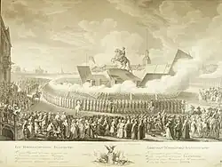 После смерти Елизаветы Петровны в 1761 году следующим императором был объявлен её племянник Пётр III — внук Петра I[1]. Его правление не устраивало многих дворян[1], Пётр III принимал спорные решения, главным образом будучи поклонником Пруссии, добровольно отдал ей отвоёванные при Елизавете земли и будучи идейным лютеранином, высказывал презрение к православной церкви[12]. С участием его жены Екатерины Алексеевны был устроен дворцовый переворот, в итоге которого Екатерина II взошла на престол[1]. Пётр III отрёкся от престола и умер через несколько дней, вероятно был убит[13]. Екатерина поселилась в Зимнем дворце Елизаветы и за время её правления дворец оброс дворцовым городком, сама императрица редко покидала территорию дворца, но летом отдыхала в Царском селе[13]. Екатерина активно занималась государственными делами, тщательно подбирая себе помощников, при ней работали такие знаменитые деятели, как советчик и фаворит Потёмкин, канцлер Безбородко, генералиссимус Суворов, фельдмаршал Румянцев, адмиралы Чичагов, Орлов, организатор учебных заведений Бецкий, государственный поэт Державин, президент академии наук Дашкова[14].