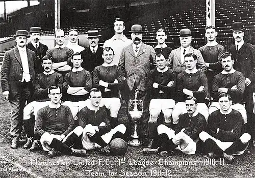 «Манчестер Юнайтед» является английским профессиональным футбольным клубом из Стретфорда, Большой Манчестер. Клуб был основан в 1878 году под названием «Ньютон Хит (Ланкашир энд Йоркшир Рейлуэй)». Первым официальным матчем клуба стала игра первого раунда Кубка Англии в октябре 1886 года[1]. В 1902 году клуб сменил название на «Манчестер Юнайтед», а в 1910 году переехал на стадион «Олд Траффорд», на котором выступает по сей день[2]. Свой первый трофей национального уровня «Манчестер Юнайтед» выиграл в 1908 году, став чемпионом Первого дивизиона. Впоследствии клуб ещё 19 раз становился чемпионом Англии, а также 11 раз выигрывал Кубок Англии и 4 раза — Кубок Футбольной лиги. Кроме того, «Юнайтед» трижды выигрывал Кубок европейских чемпионов[2][3].