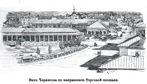 После отмены крепостного права с 1861 года постепенно растёт население Чернигова. Подавляющее большинство домов деревянные. Район обязательных каменных построек ограничивался Красной (базарной) площадью. Центральные улицы освещались газовыми фонарями, а с 1895 года внедрено электрическое освещение. Гужевой транспорт являлся доминирующим. Основные грузы возили по Десне. В начале XX века по шоссе «Киев — Петербург» курсируют конные дилижансы до Гомеля и Козельца.