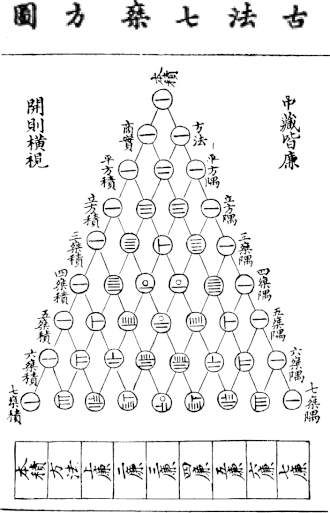 Во II веке н. э. были созданы «Трактат об измерительном шесте» (по астрономии) и «Математика в девяти книгах» (книга для землемеров, инженеров, чиновников и торговцев) — наиболее древние из дошедших до нас математических сочинений Китая. Вместе с ещё рядом книг, написанных в III—IV веках, они образовывали «Десять классических трактатов», которые долгое время переиздавались без изменений[51]. До XIV века математика Китая представляла собой набор вычислительных алгоритмов для решения на счётной доске[52].