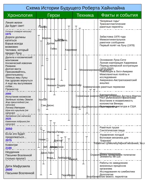 Ниже приводится хронология «Истории Будущего». Указаны годы, когда происходят события в произведениях (если это известно). Отмечены рассказы, которые были запланированы, но никогда не были написаны, см. пояснения ниже.