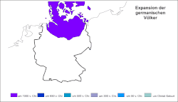 К тому времени древнеиталийские народы пришли на территорию Апеннинского полуострова, где позднее был построен и развивался Рим. К I тысячелетию до н. э. на земли, ранее занимаемые италийскими народами, пришли германцы, продолжив экспансию на земли кельтских народов: заняв территории между реками Эмс и Рейн, германцы двинулись на юг, к Майну, а затем — к Дунаю. Учащение контактов с кельтами привело к заимствованию большого количества новых слов. Например, были адаптированы такие слова как Amt, Recht, Eisen. Другими соседями германцев на востоке были венеды, иллирийцы и славяне, которые также имели языковые контакты друг с другом.