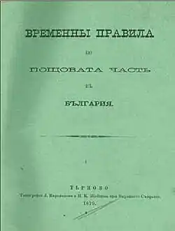 В ходе Русско-турецкой войны 1877—1878 годов турки нанесли большой урон болгарской почтово-телеграфнойсвязи[2]. Начиная с 12(24)апреля1877 года русские войска организовали на территории Болгарии военно-полевую почту, которая включала 21 полевое почтовое учреждение, и приступили к восстановлению прежних телеграфных линий и строительству новых[2][3][4]. Русская военно-полевая почта функционировала до мая — июня 1879 года. Одновременно Гражданским управлением при Штабе русской армии в Болгарии была создана обычная почтовая служба[2][3][5].