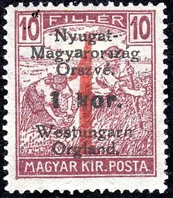 - ↑ Западной Венгрии выпуски // Большой филателистический словарь / Н. И. Владинец, Л. И. Ильичёв, И. Я. Левитас, П. Ф. Мазур, И. Н. Меркулов, И. А. Моросанов, Ю. К. Мякота, С. А. Панасян, Ю. М. Рудников, М. Б. Слуцкий, В. А. Якобс; под общ. ред. Н. И. Владинца и В. А. Якобса. — М.: Радио и связь, 1988. — 320 с. — 40 000 экз. — ISBN 5-256-00175-2.